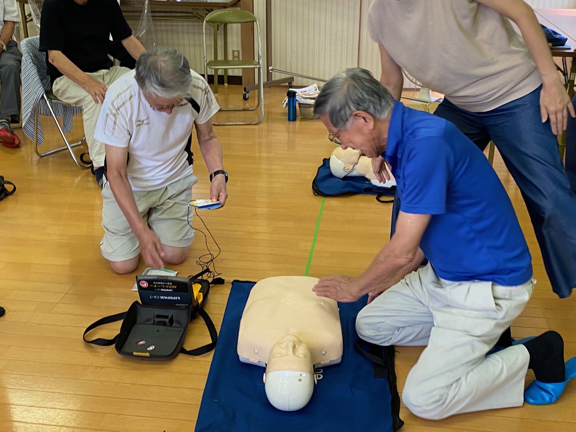 昨年同様に、自治会館にて午前中は自主防災会主催で救命救急訓練、昼からは自治会主催で夏まつりを開催するなど、本日は日吉台2南DAYとなりました。