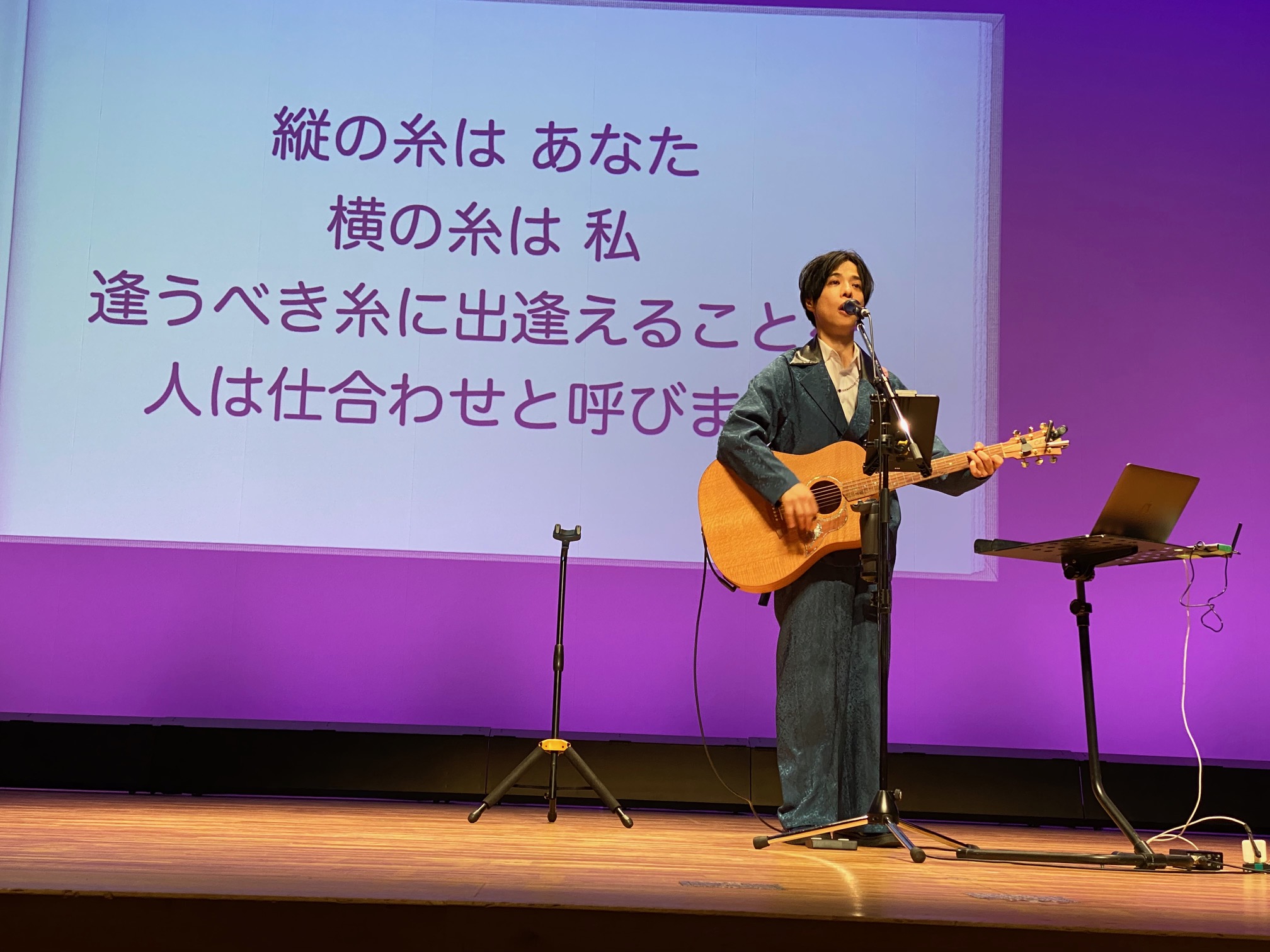 講演では、シンガーソングライターである石田裕之さんにより、東日本大震災の被災地である石巻でのボランティア活動を通した体験を歌と語りでお話を頂きました。素晴らしいお話でした。