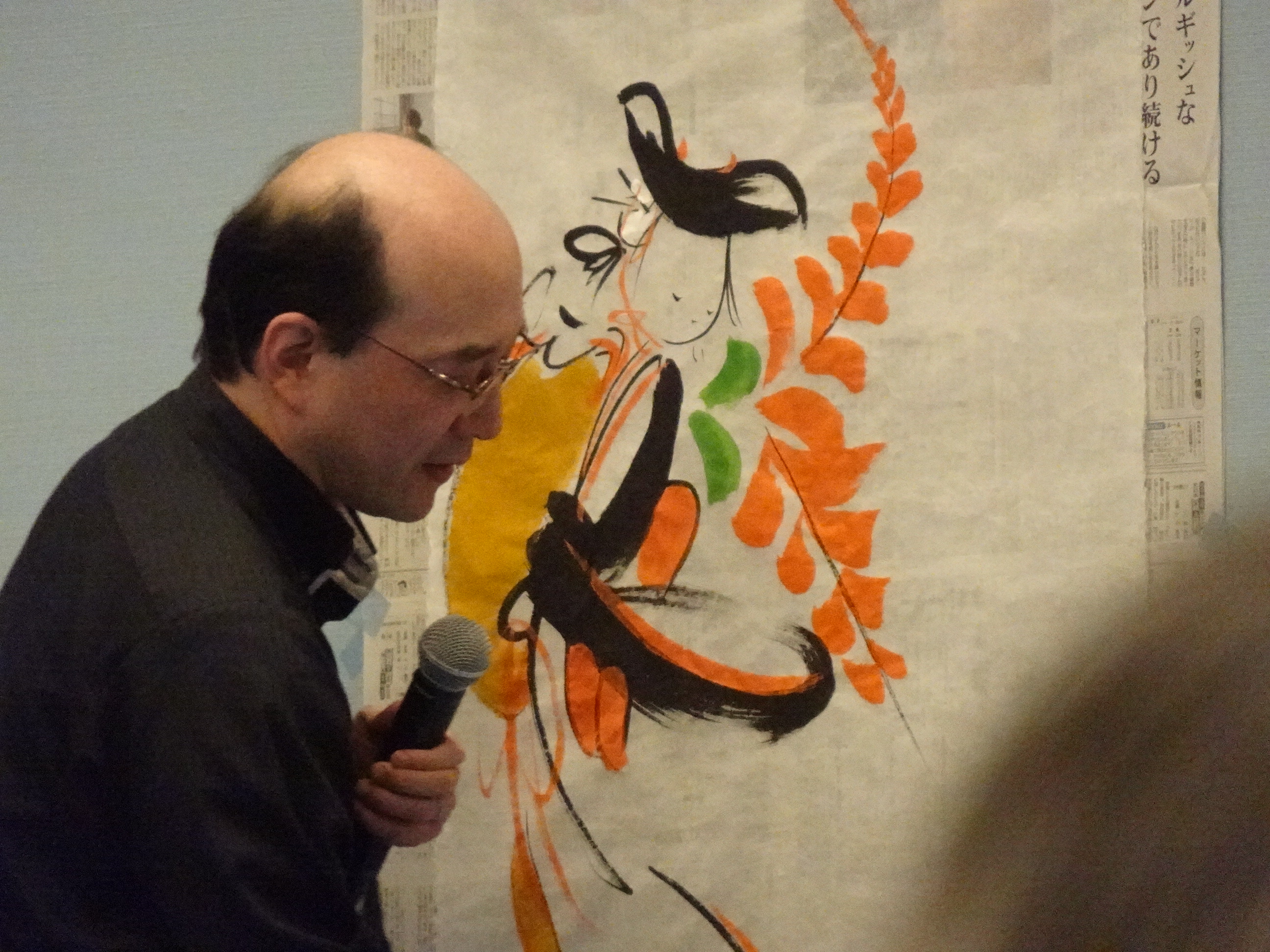 今回の記念講演には5代目大津絵師、髙橋松山さんに大津絵を描く実演ををしながらのお話でしたが、新しいものを取り入れながらも、大津絵としての形にこだわって、今に至るという話は印象に残りました。大津の教育も、流行と不易を取り違えないよう、大いにこだわりを持ちたいものです。