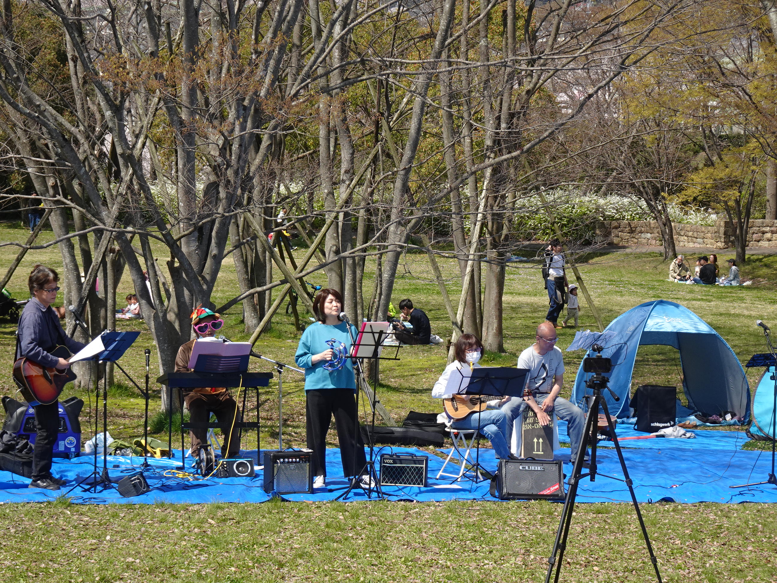 本日、仰木の里地域では、3年ぶりに東公園でさくらまつりが開催され、公園内のさくらは満開、空一面の青空など、絶好のお祭り日和となりました。音楽イベント、ポニーの乗馬体験、飲食コーナーなど、公演の形状を上手に生かして、賑やかに執り行われました。