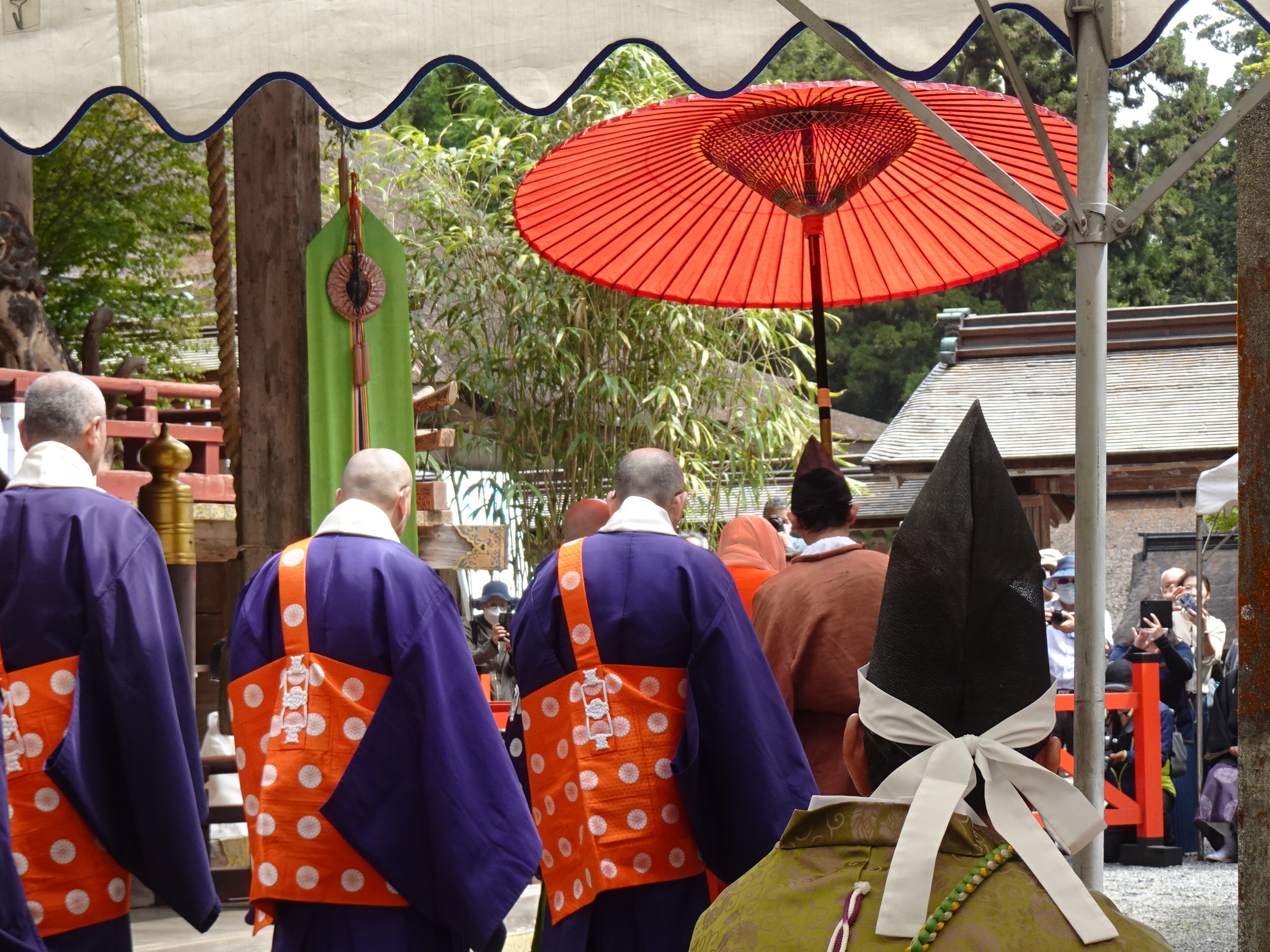 さて、14日10時からは、日吉大社例祭(山王祭)西本宮の儀が執り行われ、出席させて頂きました。神仏習合による例祭となっており、天台座主が参列し、読経し五色の奉幣が行われました。
