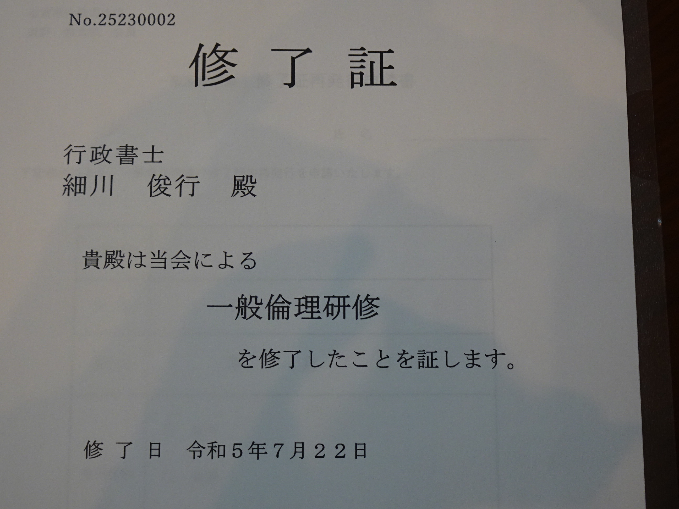 昨日の22日は、朝から行政書士の義務研修である一般倫理研修を滋賀県行政書士会館で受講しました。なんと、3時間の研修。睡魔も襲ってきますし、集中力は持続しないなかで、まさに修行でした。内容は行政書士法及び関係法令、戸籍法、人権、職業倫理、職務上請求書の適正使用等です。