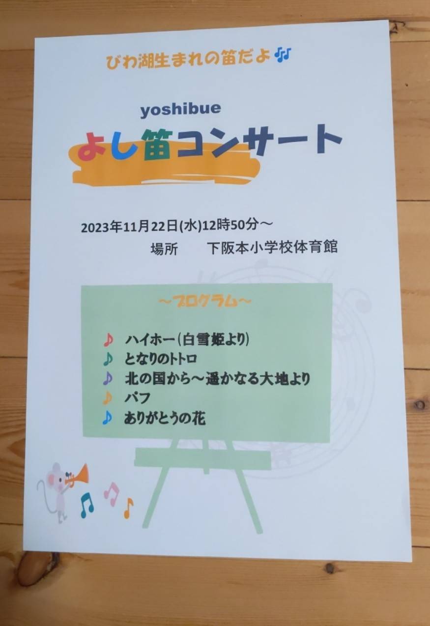 本日、下阪本小学校で昼休みの時間を活用して、出前ヨシ笛コンサートが行われました。残念ながら、わたしは仕事で参加することができませんでしたが、昼休み中にもかかわらず、たくさんの子どもが聞きに来てくれました。5曲の演奏と琵琶湖のこと、ヨシのことのお話もしていただきました。