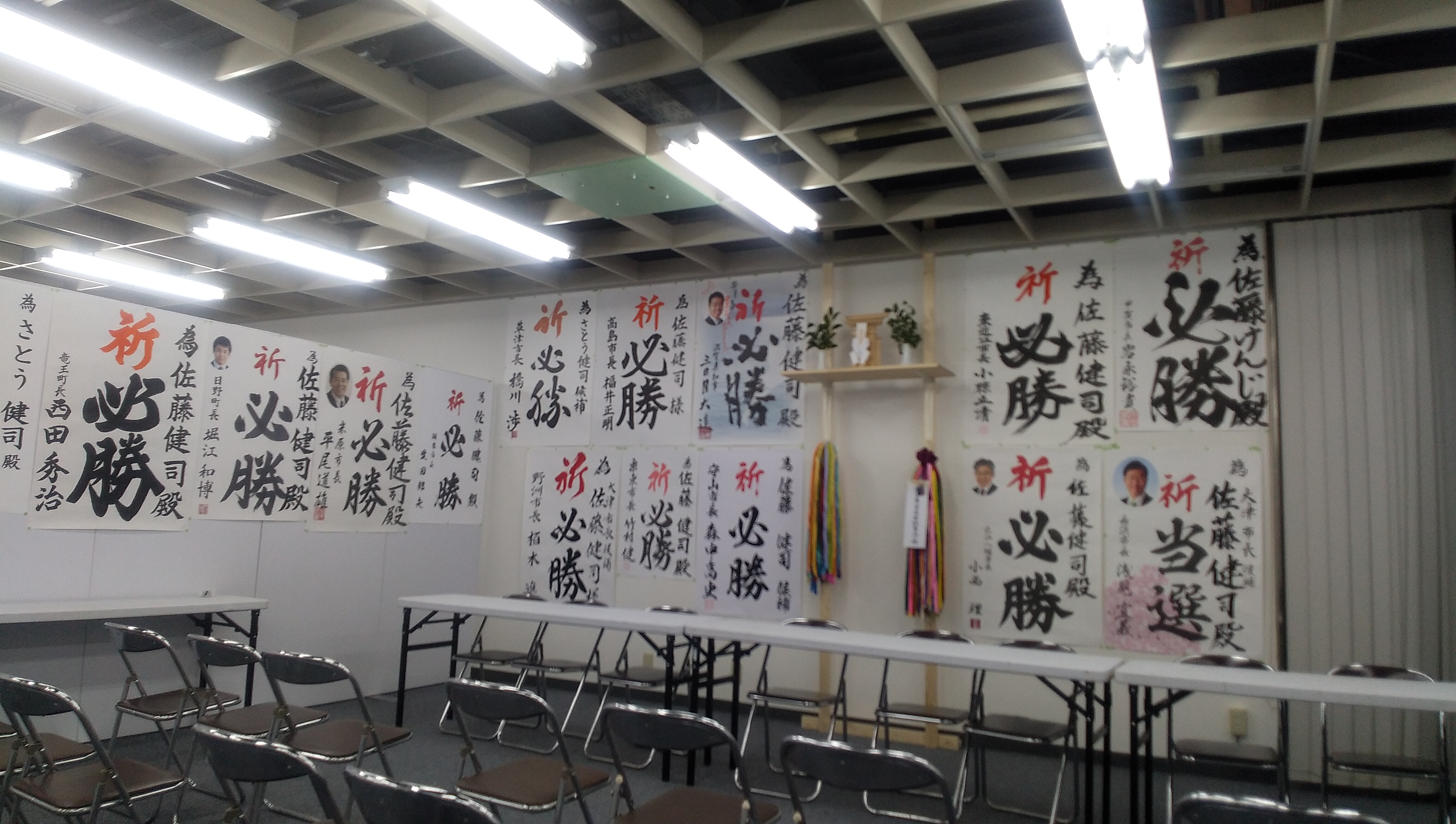 残念ながら、わたしは選挙事務所で証紙張りに来られる支援者の方々をお迎えするため出陣式には出席できませんでした。雰囲気を味わえなかったのは残念です。証紙張りには会場に入りきれない50名を超える方々においでいただきました。感謝、感謝であります。ありがとうございました。