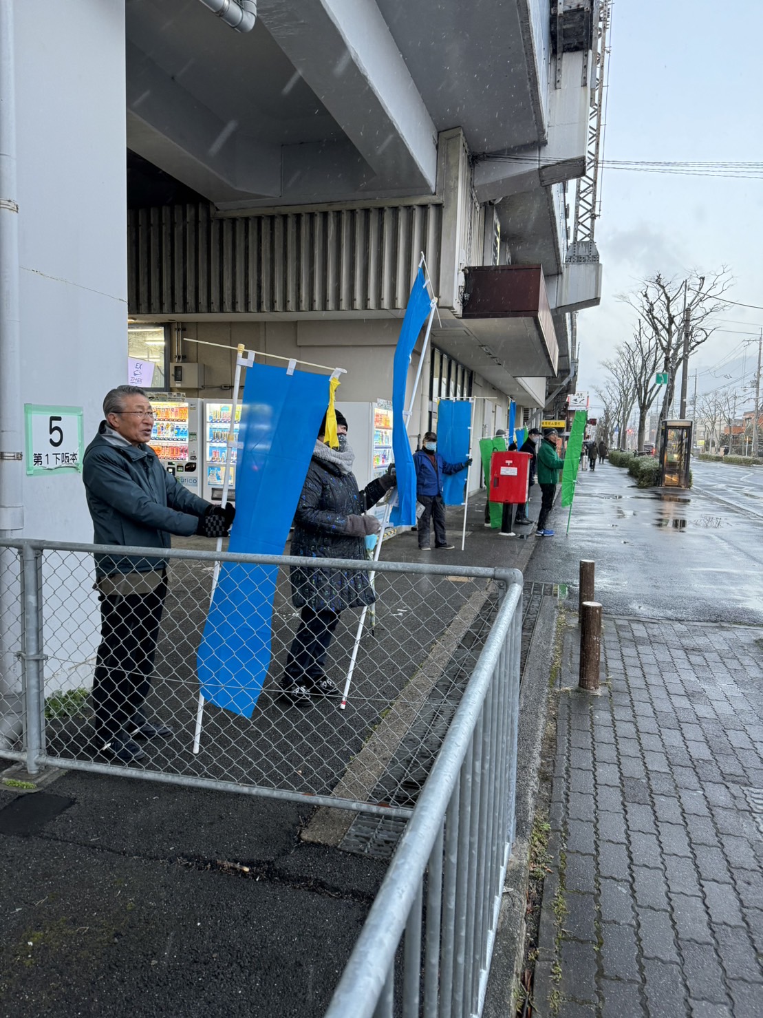 本日は、6時30分から選挙対策本部とは別に、JR唐崎駅で自民党の日吉支部と唐崎支部の皆さんと駅立ちをしました。平均年齢は相当高いメンバーなので、雪舞う日のこの時間は体力的にきついのではと思いましたが、皆さん元気です。選挙となると血が騒ぐのでしょうかね。あすは、JR比叡山坂本駅前で駅立ちを行うこととなりました。6時半です・・・。