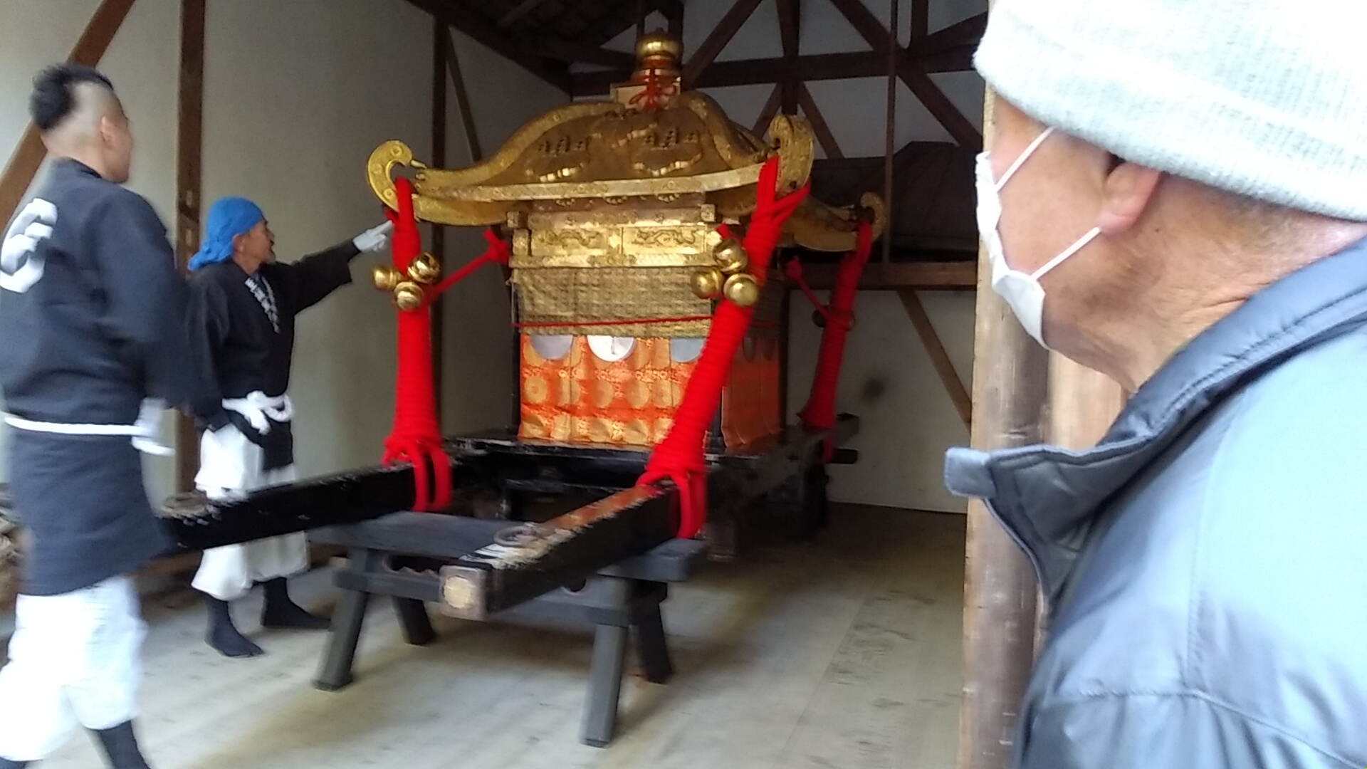 「神輿上げ神事」は、麓から奥宮に2基のお神輿を担ぎ上げるお祭りで、この日から4月12日までの間、奥宮の夫婦の神様はお見合いをされているとも、お祭りに向けて清めこもられるともいわれております。