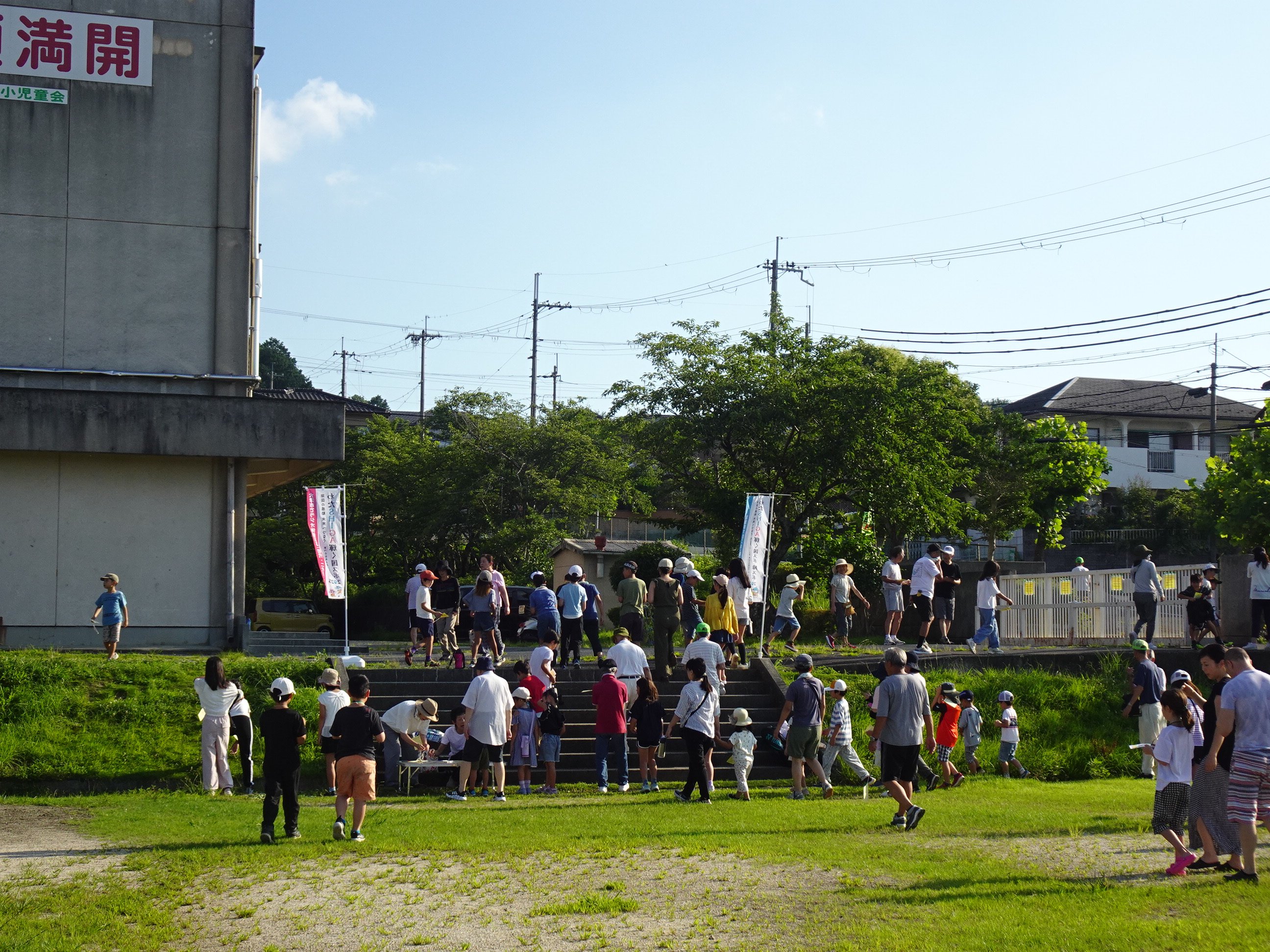 さて、夏休みの恒例行事となってる日吉台のラジオ体操。本日からスタートです。初日は朝から暑かったのですが、多くの小学生や大人など約70名の参加がありました。ラジオ体操第1と第2を行いますが、不思議なことに、第1の方は身体に染みついているようで、自然と身体が動きます。教育の力でしょうか。