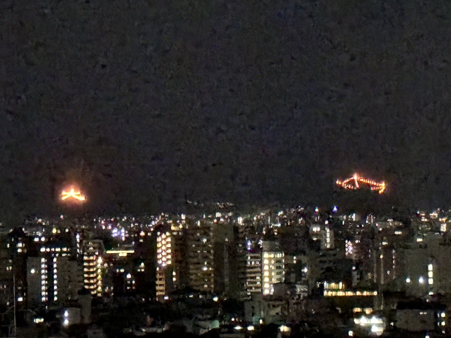 ここ数年は、五山の送り火を京都伊勢丹から見ています。よく見えます。