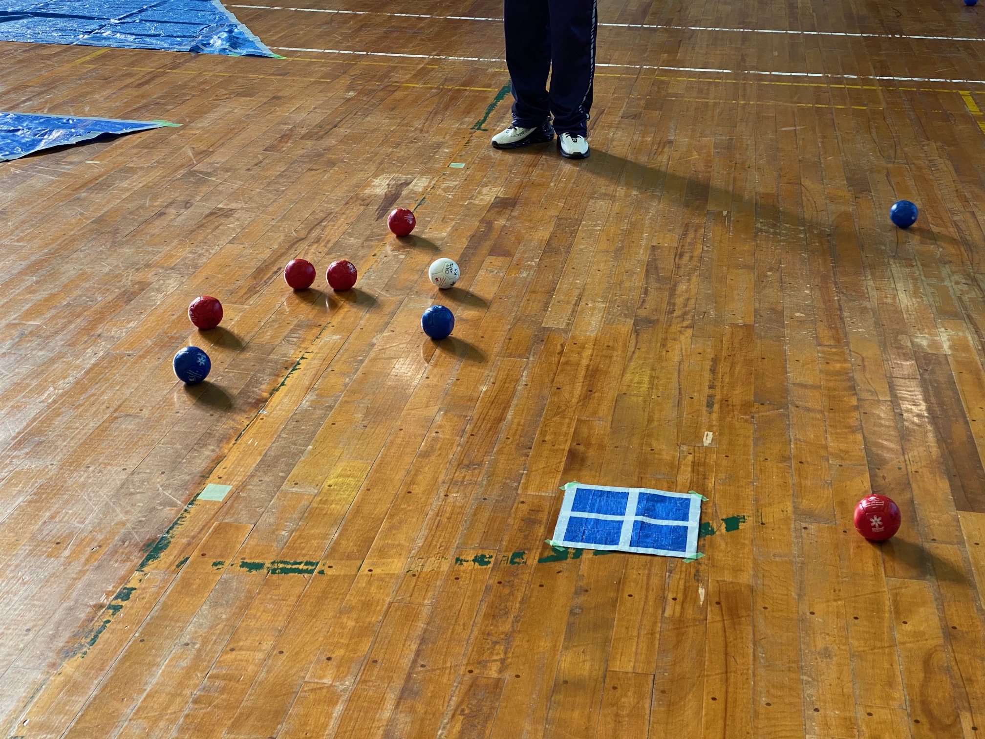 日曜の朝は、日吉台学区スポーツ振興会主催のボッチャ大会が日吉台小学校体育館で開催され参加しました。約40人ぐらいの参加となりましたが、子どもたちの参加が多く、大変盛り上がりました。この競技、三人ひとくみで行いますが、結構むずかしい。思うところへボールが投げられない情けなさを痛感しながらも、ワイワイガヤガヤと結構楽しい時間を過ごしました。わがチームの結果は9組中3位。がんばりました。