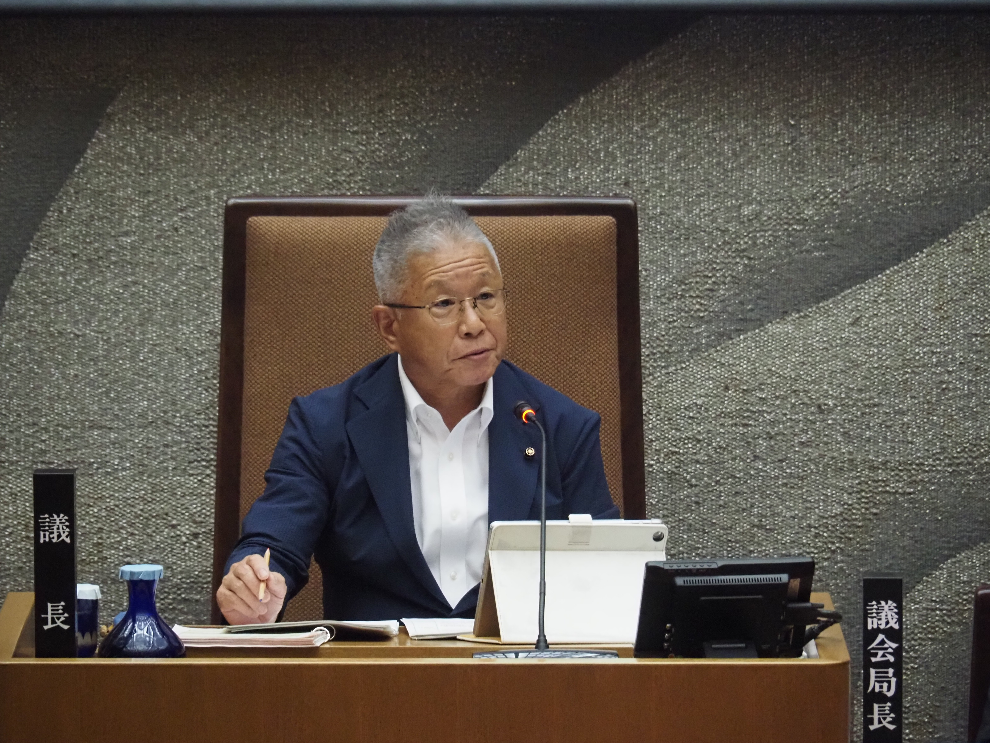 わたしは、午前中は自席にて質問及び執行部答弁を聞いておりましたが、午後から議長に代わって、議長席にて議事の采配を行いました。前日の草野議長や議会局の皆さんのご指導や助言によって、なんとか形にはなったように思いますが、まだまだ反省反省の内容でした。なにせ、ゆとりがなかった。気持ちよく質問していただき、答弁していただけるよう、ルールに則り、リズム良く議事進行ができればと思っていますが、むずかしいですね。
