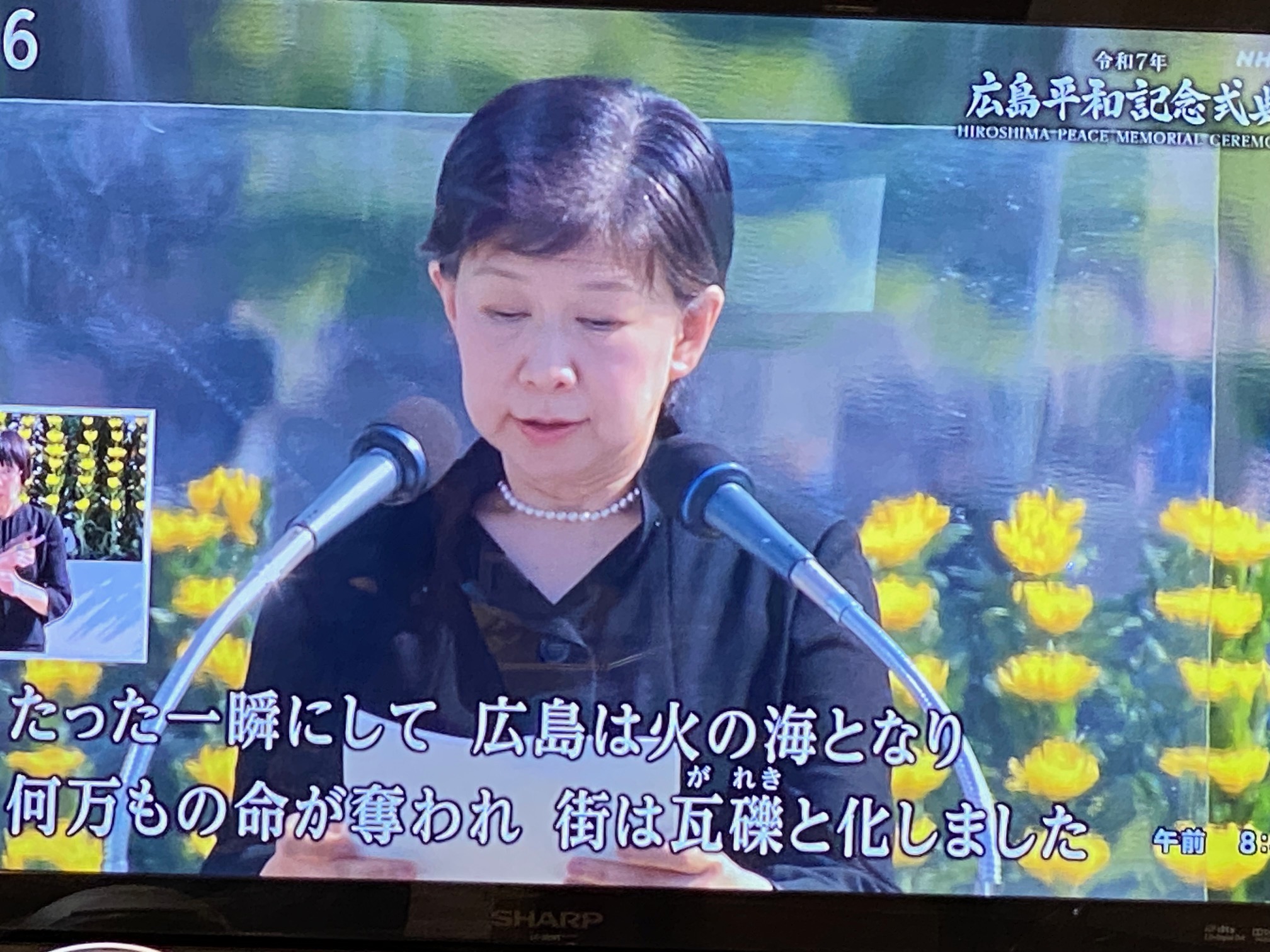 ウクライナ、パレスチナの戦禍のなか、6日に原子爆弾の被災を受けた広島で、平和式典が120か国と地域の大使など55,000人が集まって開催されました。どの挨拶も良いないようでしたが、とりわけ石破首相の挨拶は印象的でした。