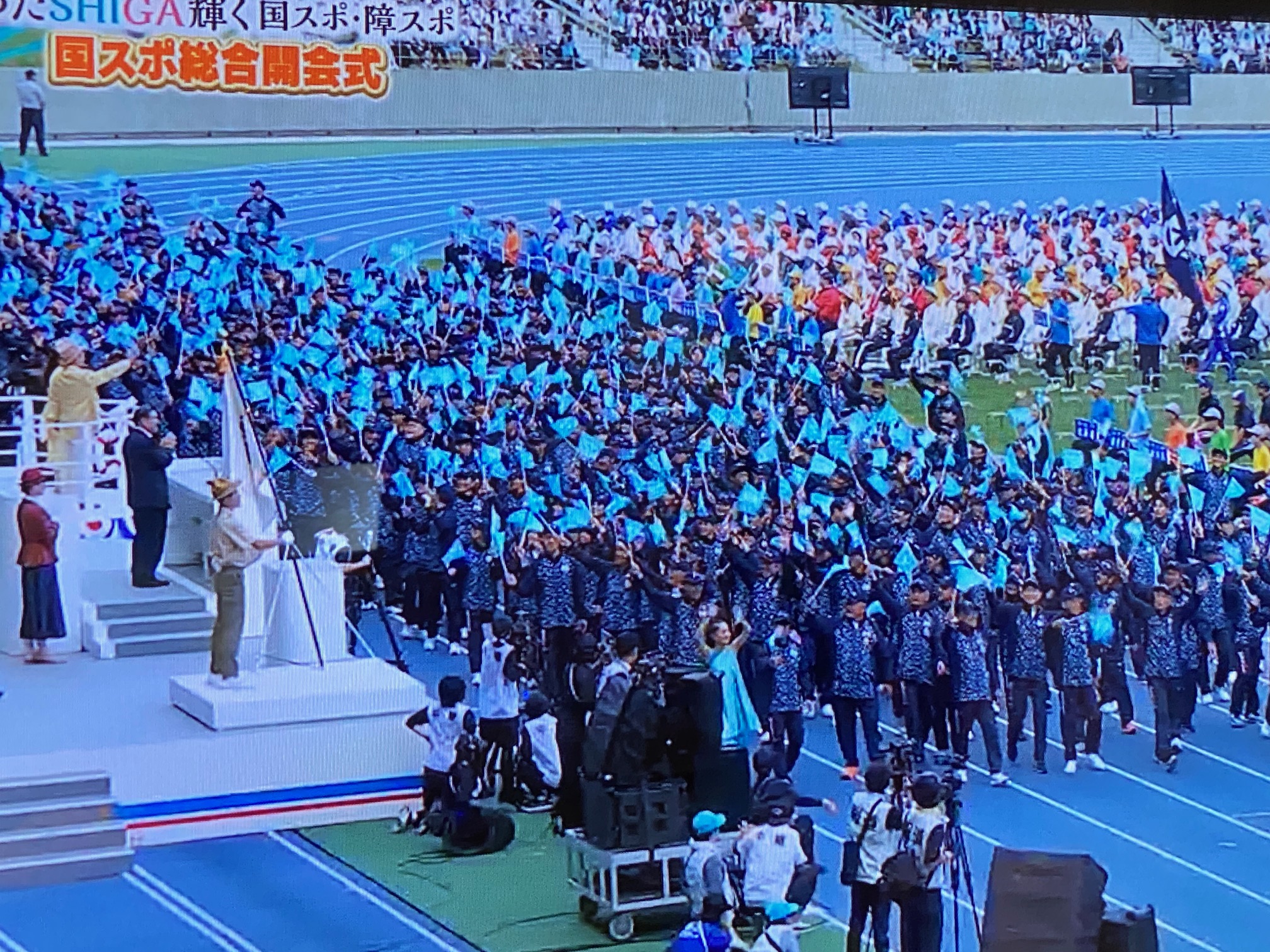さて、天皇皇后両陛下をお迎えする国スポ開会式です。わたしは、残念ながら会場には行けませんでしたが、テレビで視聴しました。全体の流れも、知事の挨拶も印象的で良かった。水色を基調にしたダンスなどの演出も良かった。関係者の皆さんお疲れ様でした。あっぱれです。