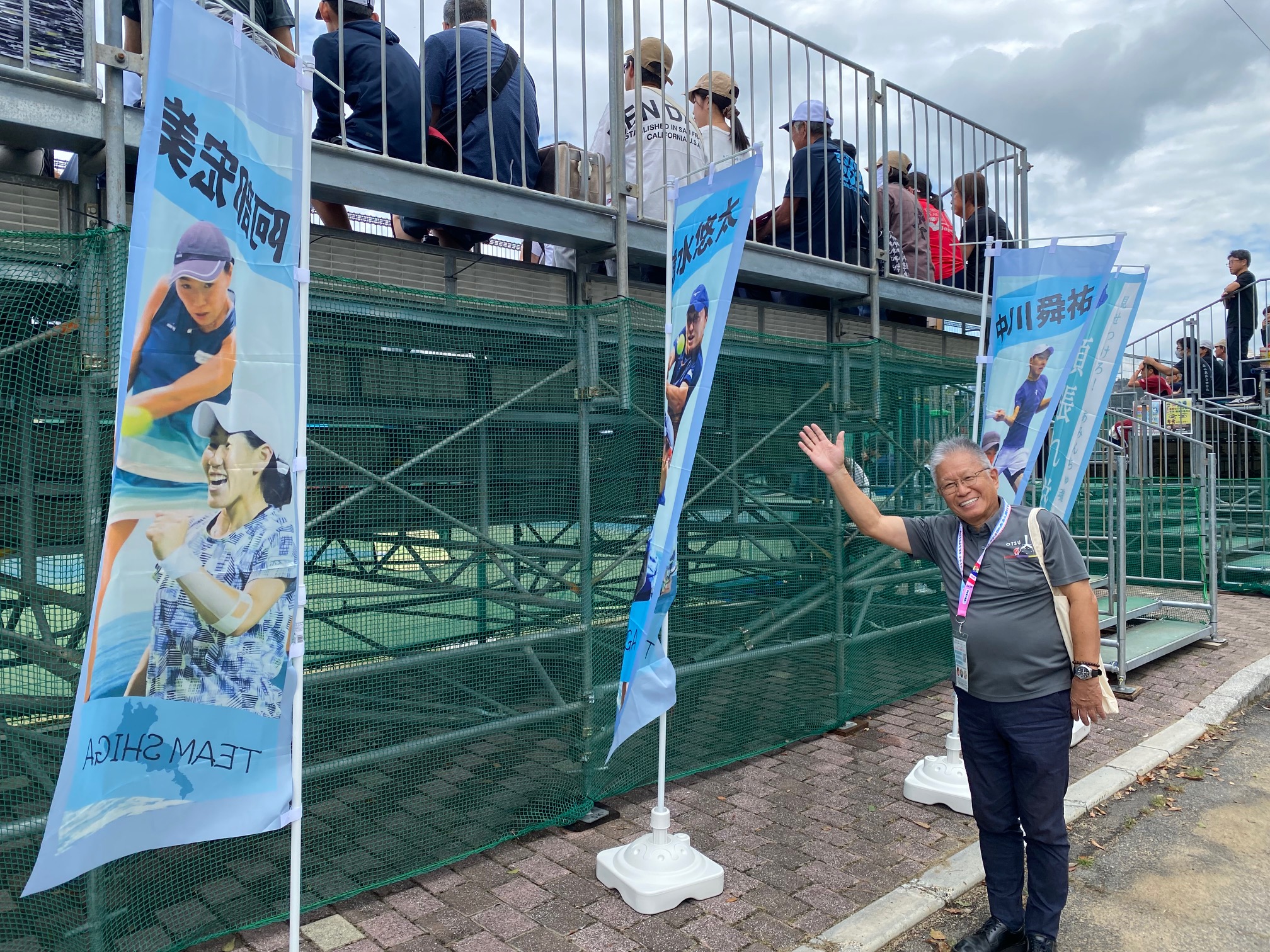 訃報等の対応で、朝から地域を回ってから市役所へ。緑地公園課と長寿政策課にかかる案件に対処してから、いざテニス大会会場の大石緑地スポーツ村へ。到着10時の予定でしたが、11時30分となりました。ご迷惑をおかけしました。企業局等の皆さん、お世話になりました。滋賀男子の試合中でしたが、応援が凄かった。