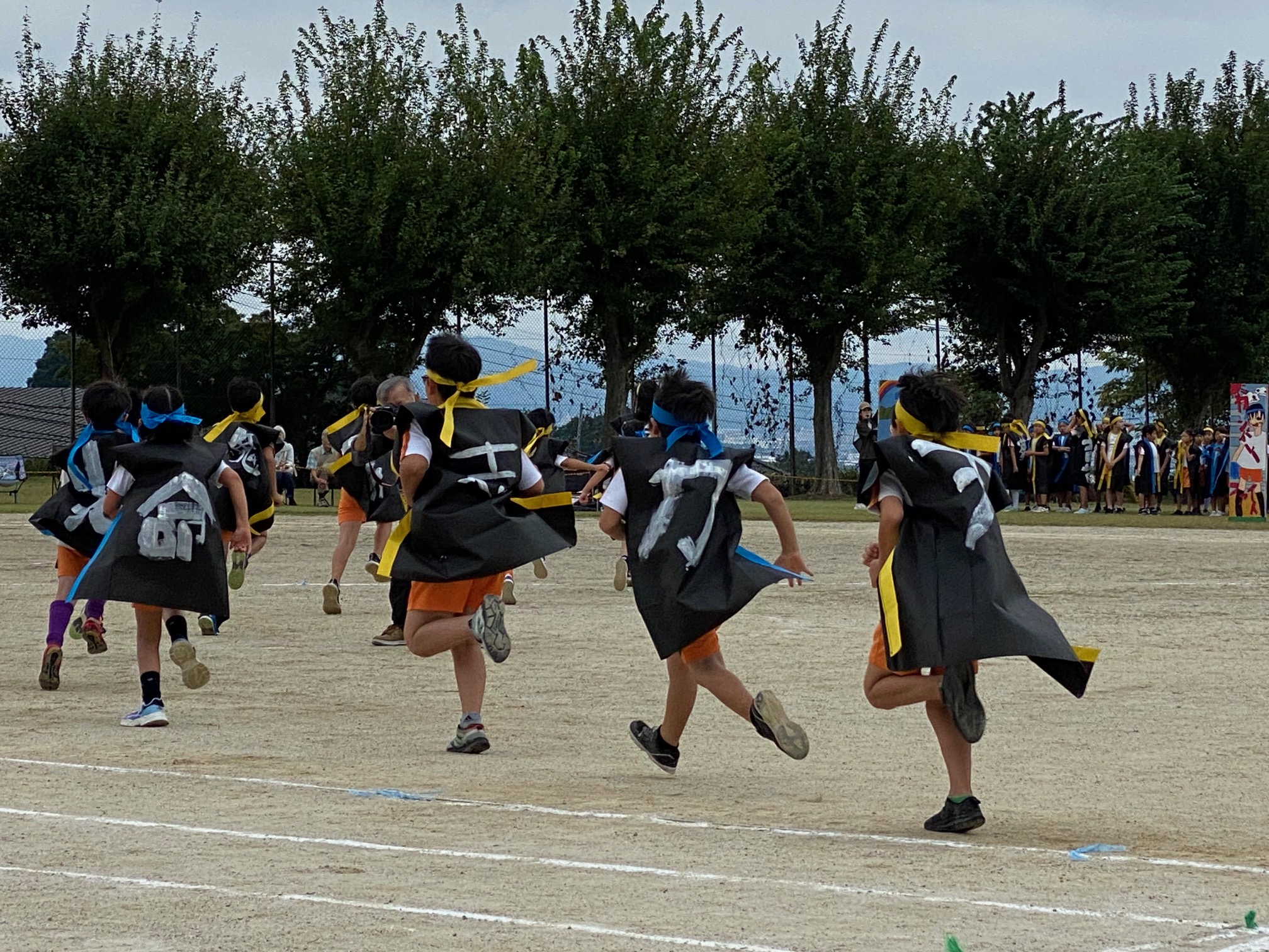 子どもたちが、どの競技・演技も笑顔満開だったのが印象的でしたね。1・2年のかわいいダンス、3・4年の力強いソーラン節、5・6年の緊張感ある組み体操はお見事でした。やはり6年の運営や補助などのがんばりが全体を引きしめました。