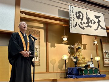 「・・・世界では、今もなお戦争や紛争が後を絶ちません。利害や歴史的な対立、宗教の違い、差別や格差など、様々な要因を背景とした暴力が蔓延しているのが現状です。また気候変動による自然災害など人びとの不安が高まっています。・・・その緊張が高まる中において、大阪・関西万博の開催が国や地域、宗教、文化の枠を超えて交流を深め、国民の気持ちをひとつにできたことは大変喜ばしい出来事でした。・・・7月24日の滋賀県デイに参加いたし、不滅の法灯を奉安し、平和と人びとの安寧を願う天台声明が奉納されました。世界の英知が集まった万博会場から、宗祖伝教大師の御誓願である「仏国土建設」の願い、そして1,200年続く天台宗と比叡山延暦寺の平和への祈りが発信できましたことは、真に尊い浄行であったと存じます。・・・皆さまにおかれましては、宗祖伝教大師の「己を忘れて他を利するは慈悲の極みなり」のみ教えを常に心に保ち、真の平和が訪れますよう菩薩行を実践くださいますことをお願いいたします。被災地の早期復興と本年が平和で実り多い年であることを念じつつ新年のご挨拶といたします。」