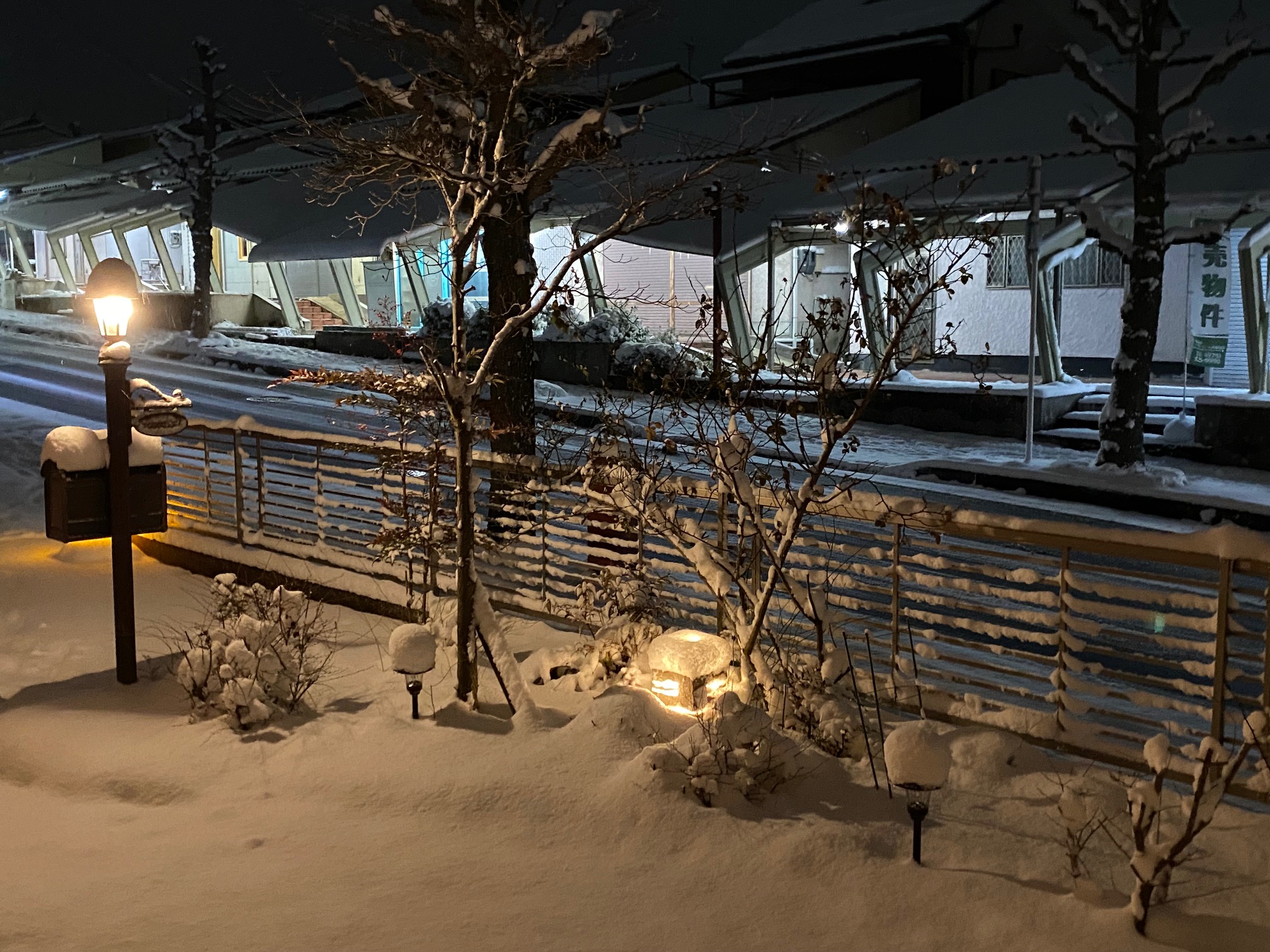 8日は朝から雪。信楽狸も雪をかぶって寒そうです。