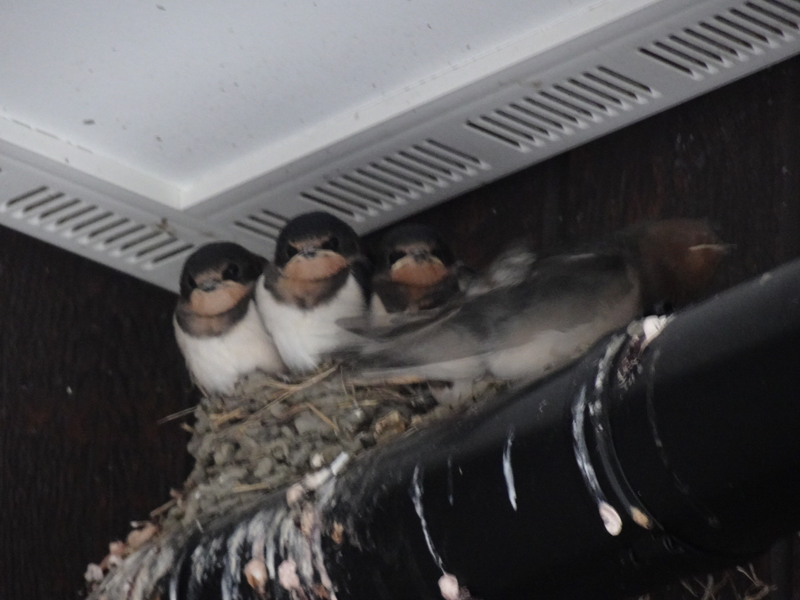 雛ツバメが親ツバメの運んでくる餌をじっと待っている姿を見つけ、思わずカメラに。からだも大きくなり、もう巣立っても良さそうですが、甘えているのでしょうか・・・。