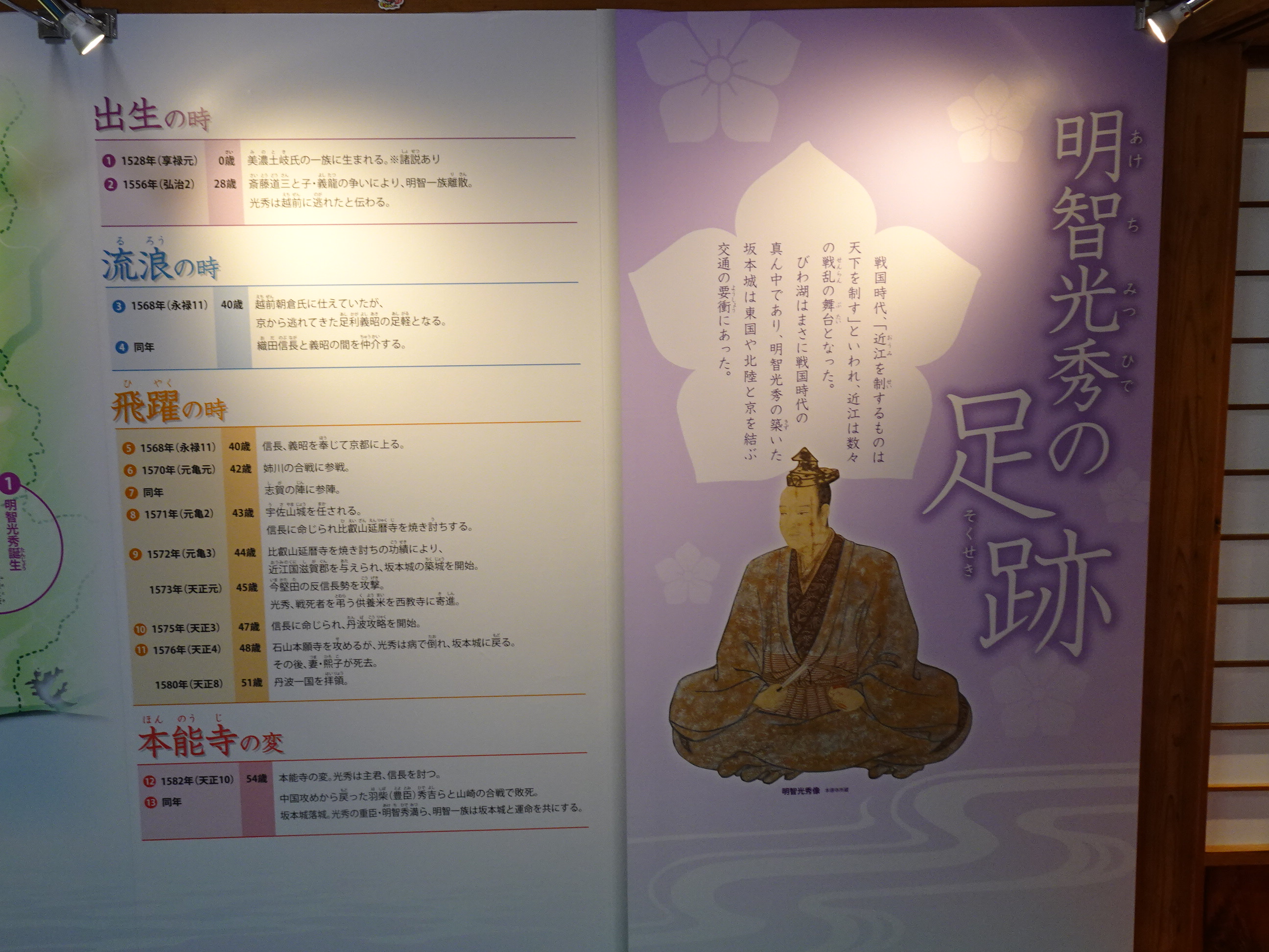 その後、西教寺にある「麒麟が来る 明智光秀館」の様子を見に寄せていただきました。土曜日、日曜日は200人ぐらいの来館だそうですが、平日は100人前後とのこと。この日は、午前中に20名程度とのこと。帰り際にバスが1台駐車場に入り、40名程度の来館者がありました。
