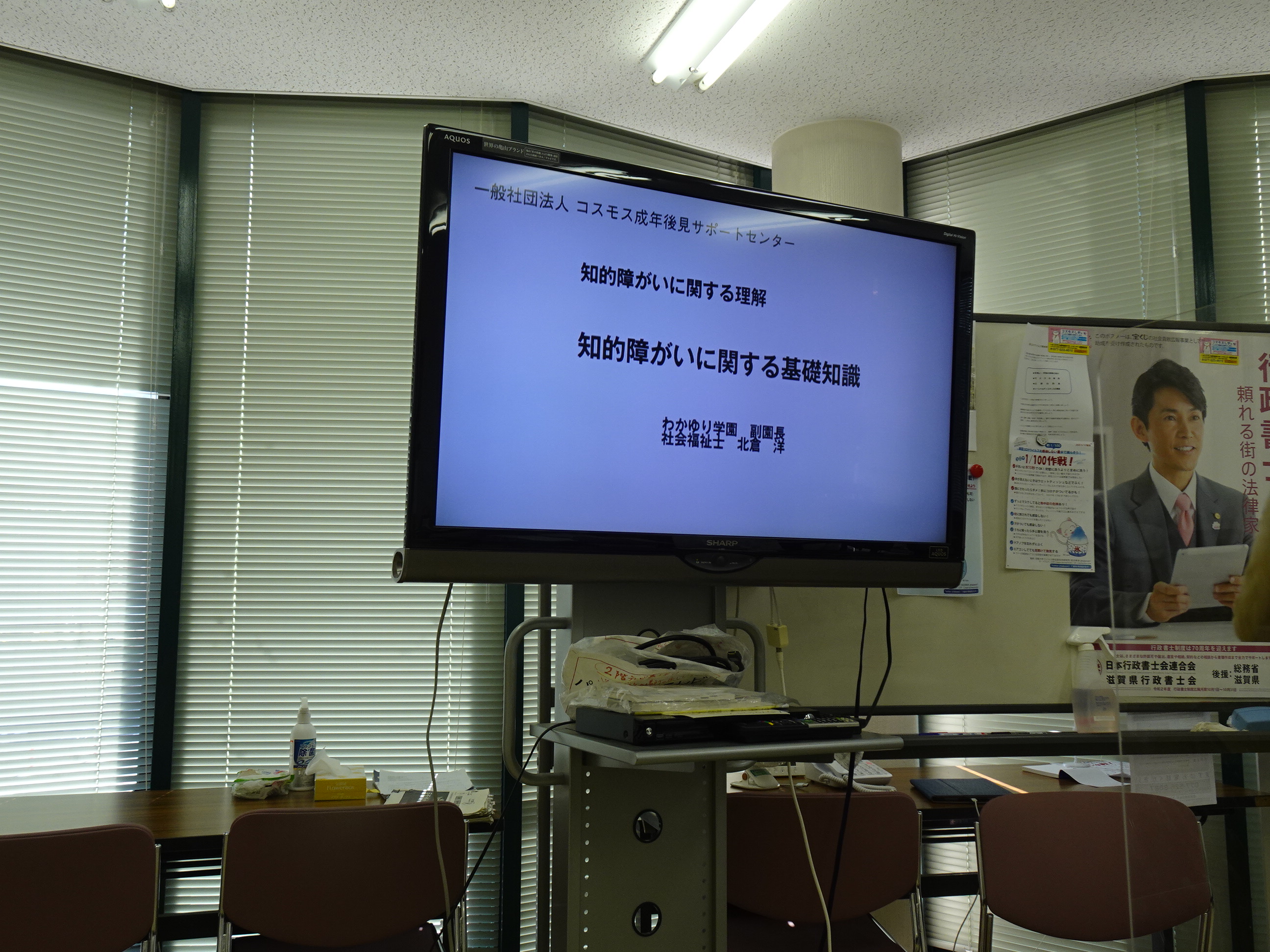 内容は成年後見制度についての研修ですが、認知症に関する理解と知的障がいに関する基礎知識、精神障がいの基礎知識、とりわけ統合失調症についてでした。