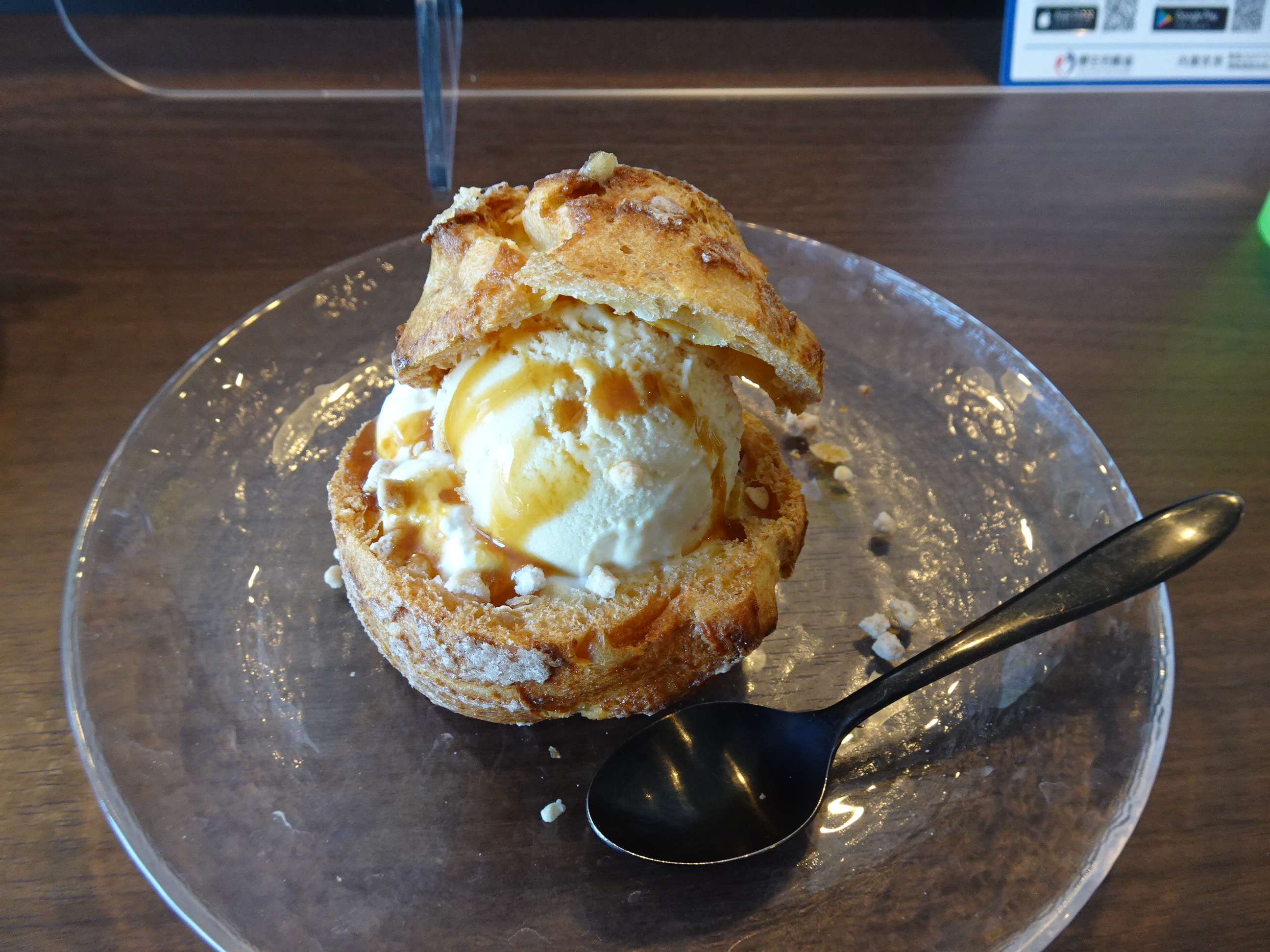 好物のシュークリームを購入するついでに、水曜日限定のシューアイスとカプチーノを。ポケーとしたひとときでした。